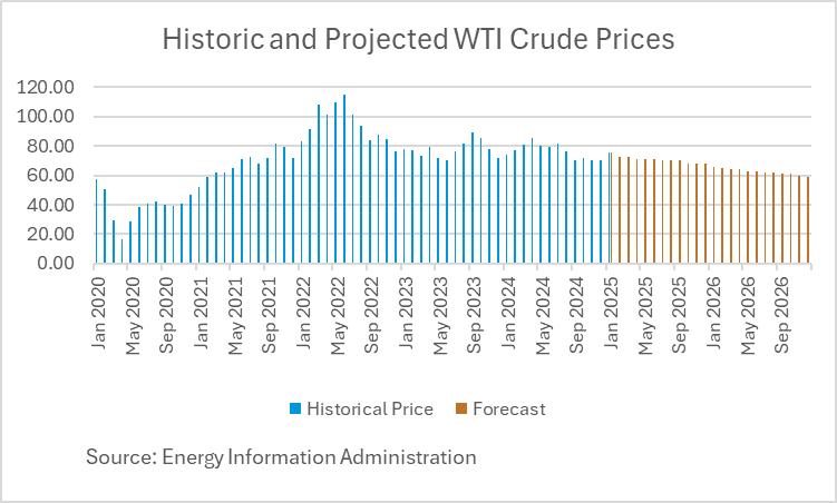 At the same time the tariffs are going into effect, there are growing disinflationary forces at play. For example, the U.S. Energy Information Administration (EIA) is forecasting that beginning in the 2nd half of 2025, gradual increases in energy production combined with relatively weak global oil demand growth will increase global oil inventories, placing downward pressure on prices through at least 2026. Oil price drops have already started to begin as over the past month, WTI crude oil futures are down 5.2%. The EIA expects prices to continue falling. This is highly disinflationary and has the potential to counter any inflationary impact due to increased tariffs. And the EIA forecast does not account for the pending deregulation and expansion of the U.S. domestic energy industry, which have already begun. Per Treasury Secretary Scott Bessent, “…there will be tariffs, there will be cuts in regulation, there will be cheaper energy. So, I would expect that very quickly we will be down to the Fed's 2% target. So, I'm expecting inflation to continue dropping over the year.”